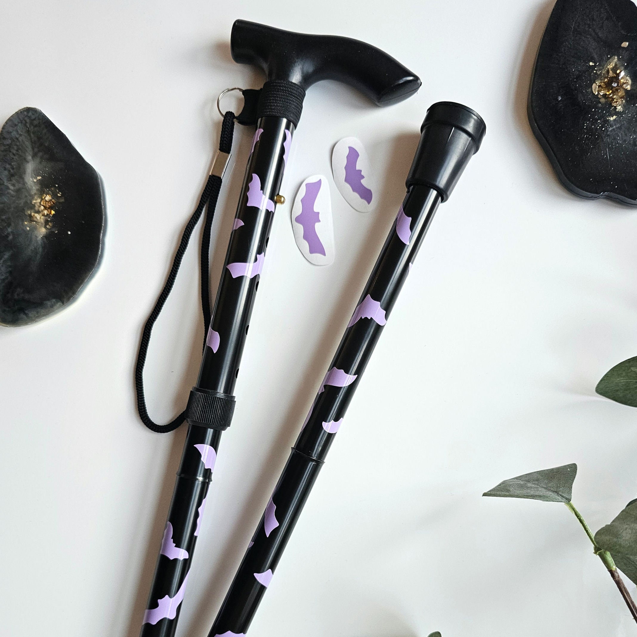 "Stylish Gothic Bat Walking Stick. Black and Purple, lightweight, customised, folding and heigh...