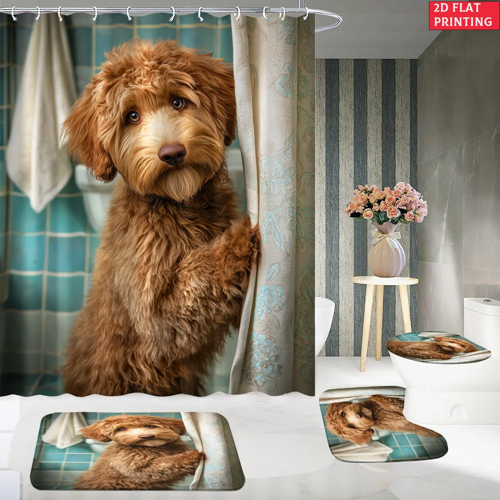 Dog,Dachshund,Yorkshire Shower Curtain Bathroom Set,Non Slip Floor Mats,U-shaped Mats,Toilet Seat Pa...