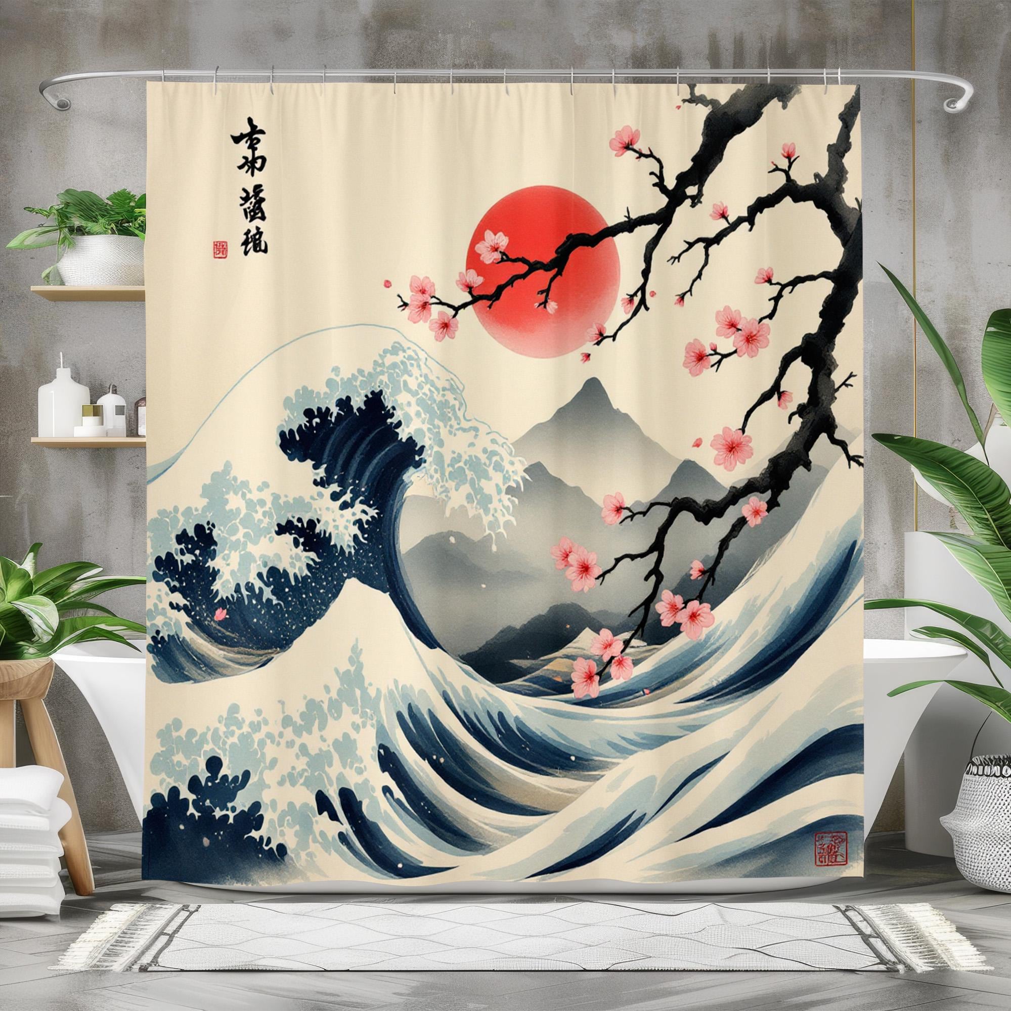 Great Wave Shower Curtain, Hokusai Wave Bathroom Decor , Traditiona...