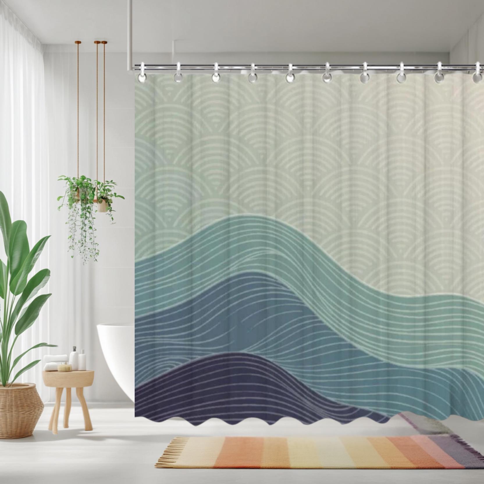 Transform your bathroom into a stunning Zen retreat with this Japanese Wave Shower Curtain featuring...