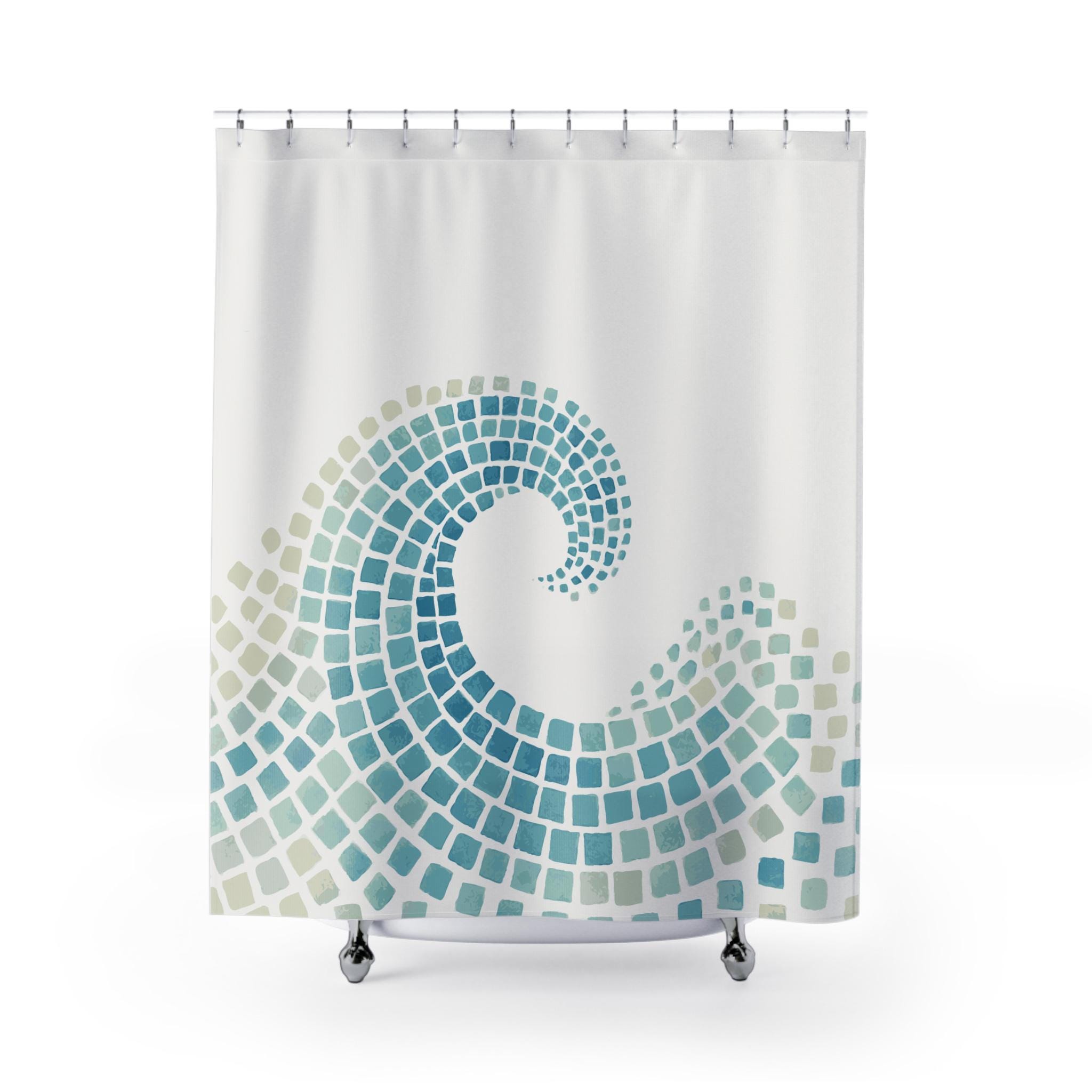 Mosaic Ocean Wave Cloth Shower Curtain. A graceful mosaic spiral wa...