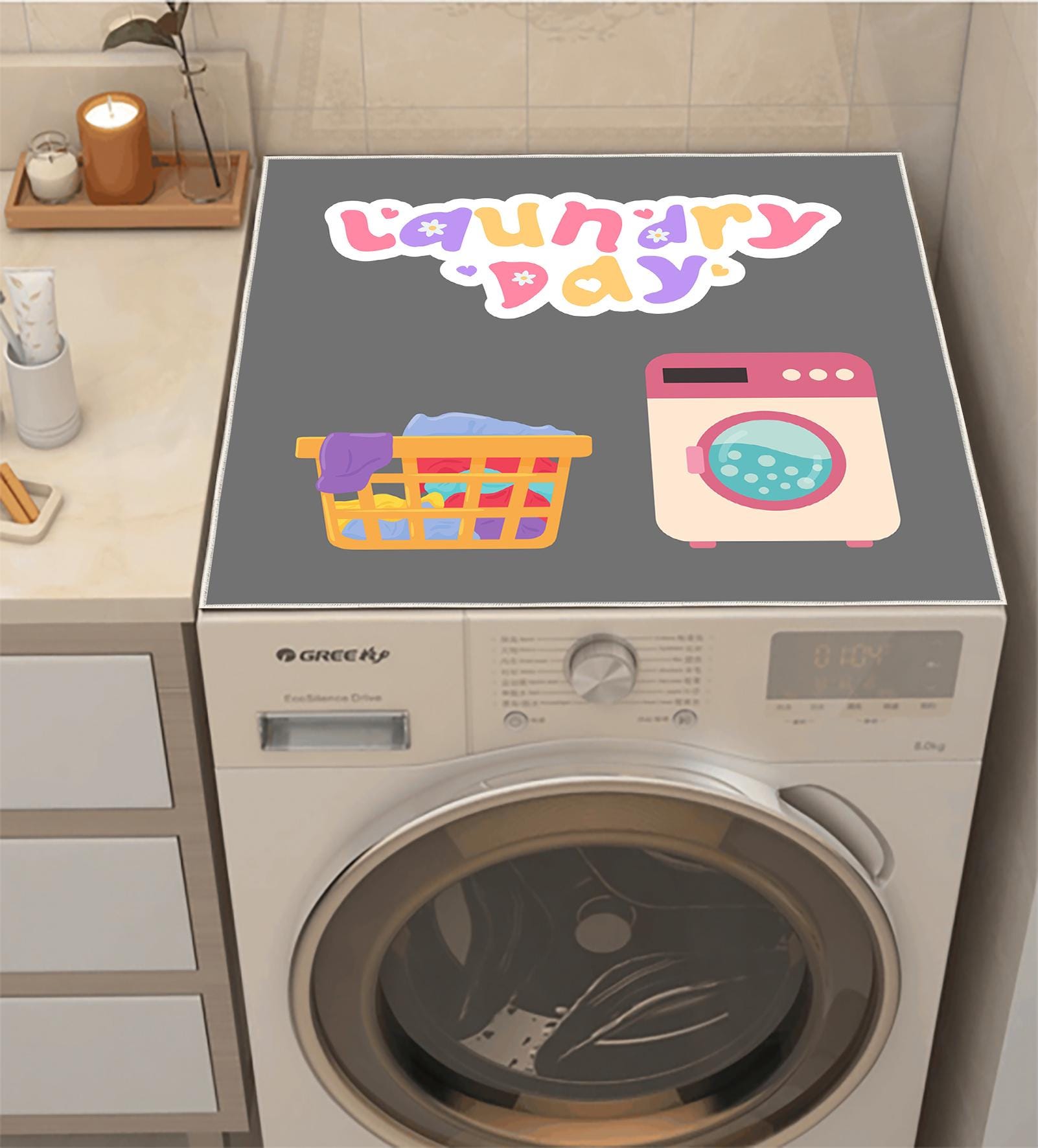 Gray Washing Machine Protector, Dryer Mat, Washing Machine Cover, M...