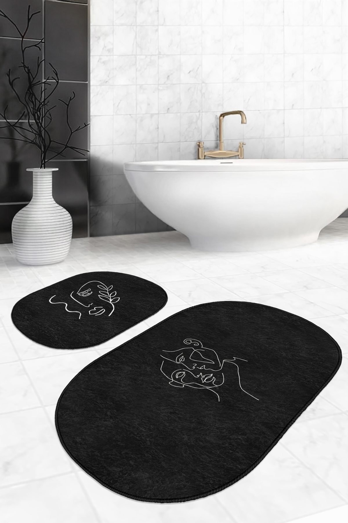 Set of 2 Boho Bath Mat, Black Bath Carpet, Bohemian Bath Decor, Vin...