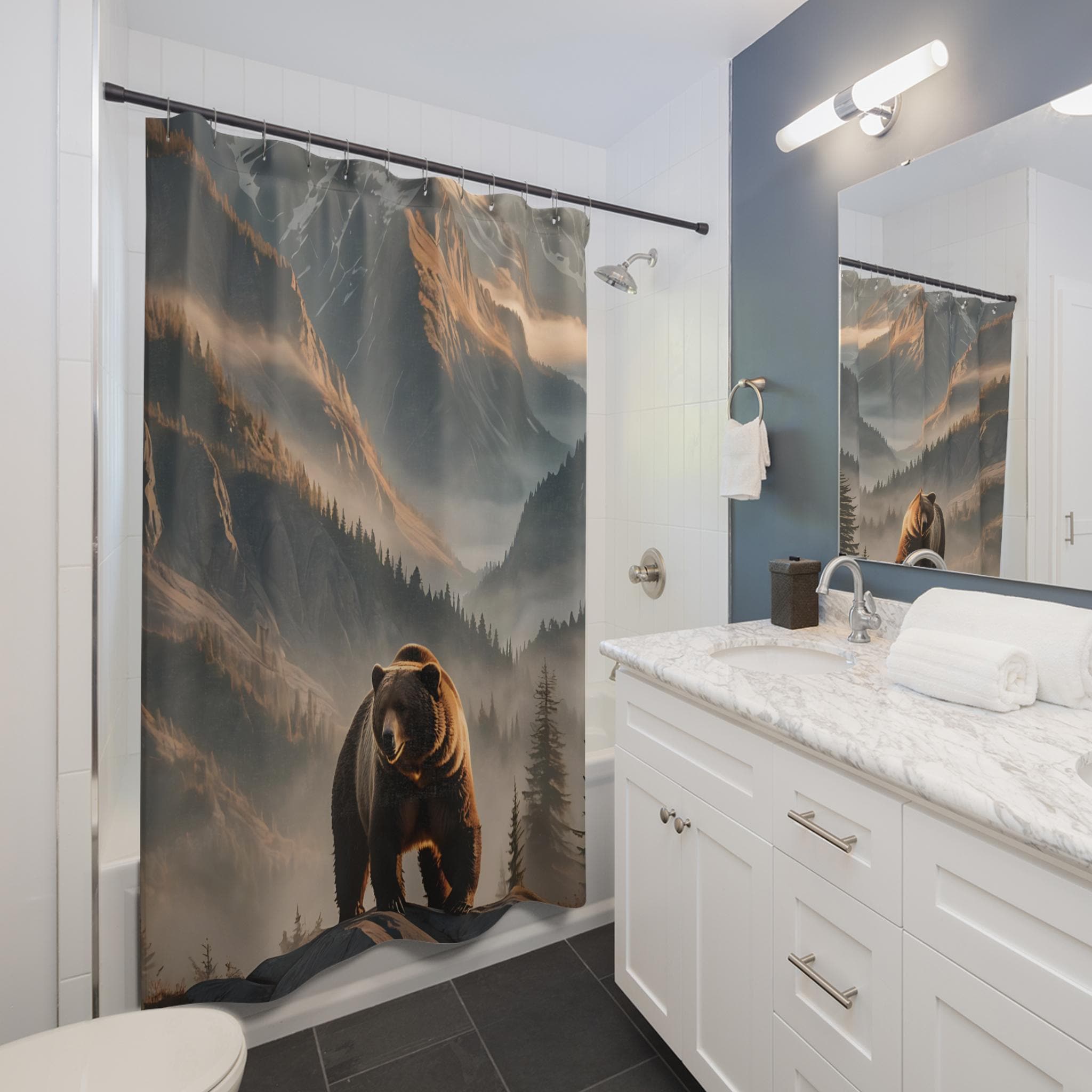 Majestic Mountain Bear Shower Curtain, Nature Home Decor, Wildernes...