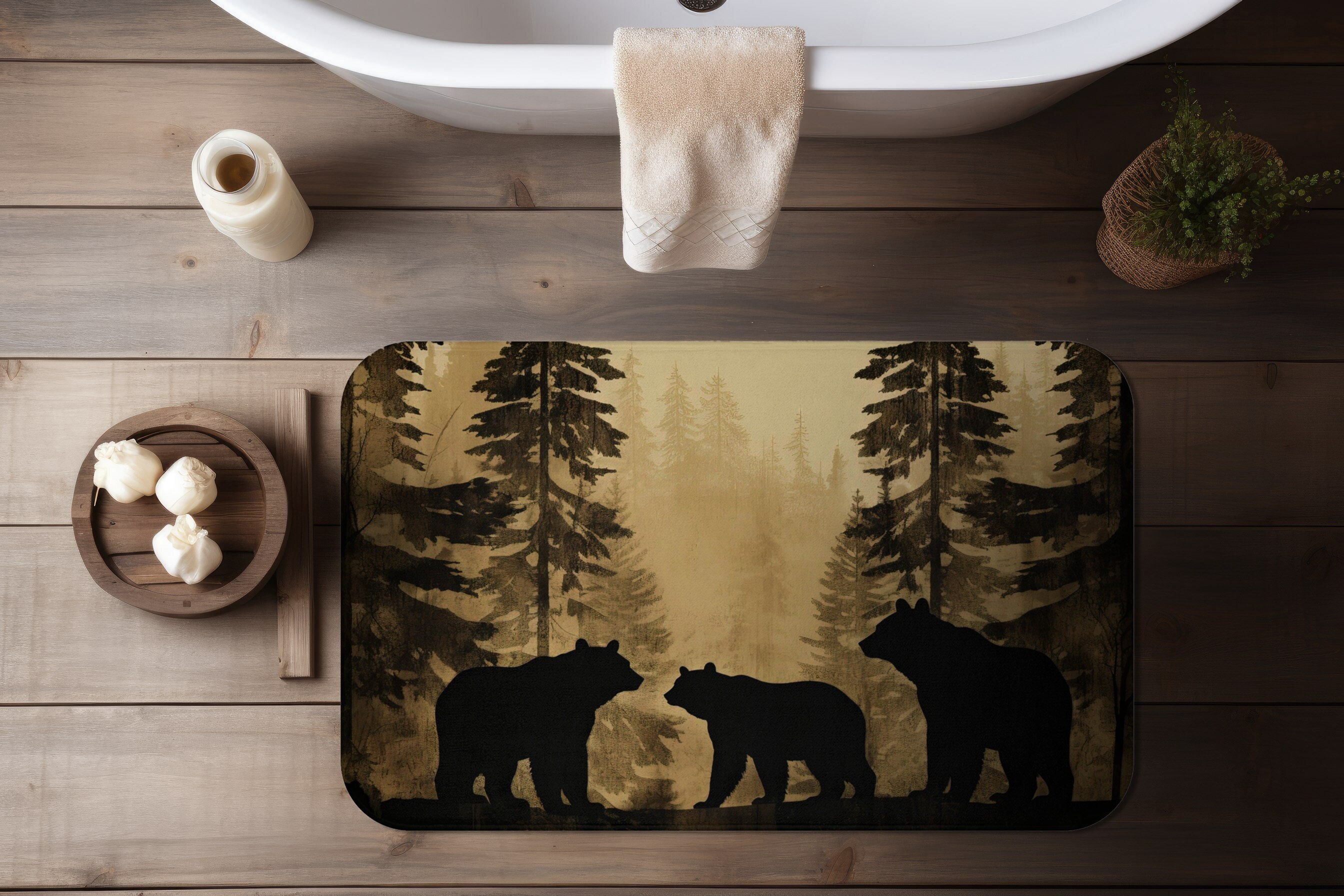 Forest Bath Mat, Evergreen Tree Bathroom Rug, Nature Lodge Cabin De...
