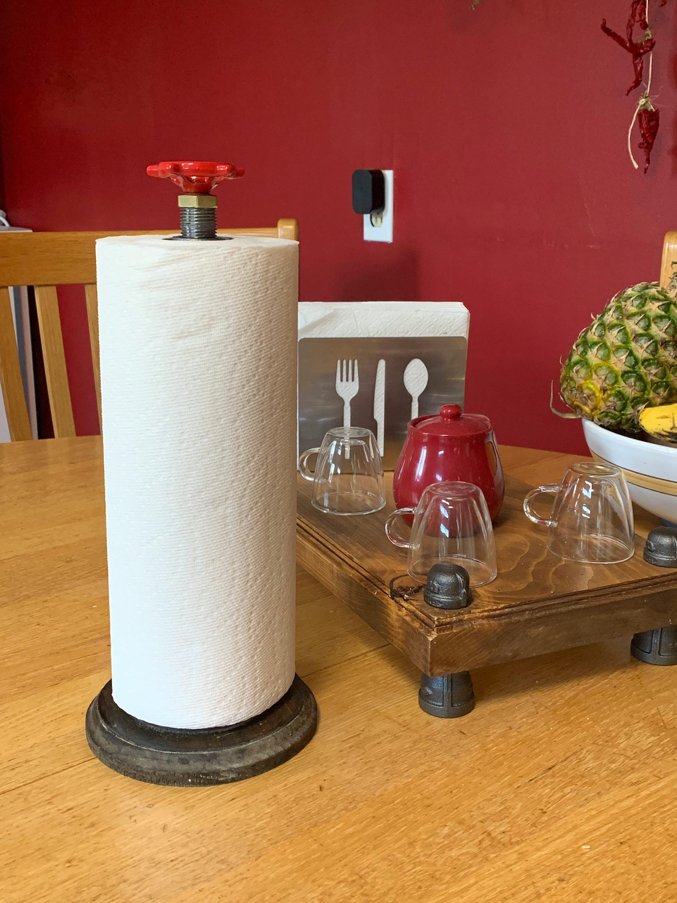 Steampunk Paper Towel Holder: Industrial Style with Water Valve