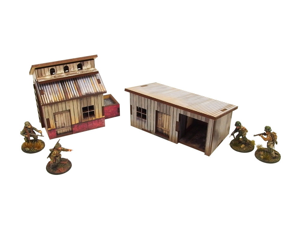 Multicolor prepainted (UV-printed) single level WW2 Normandy Small Sheds w. Dovecote buildings (2 se...