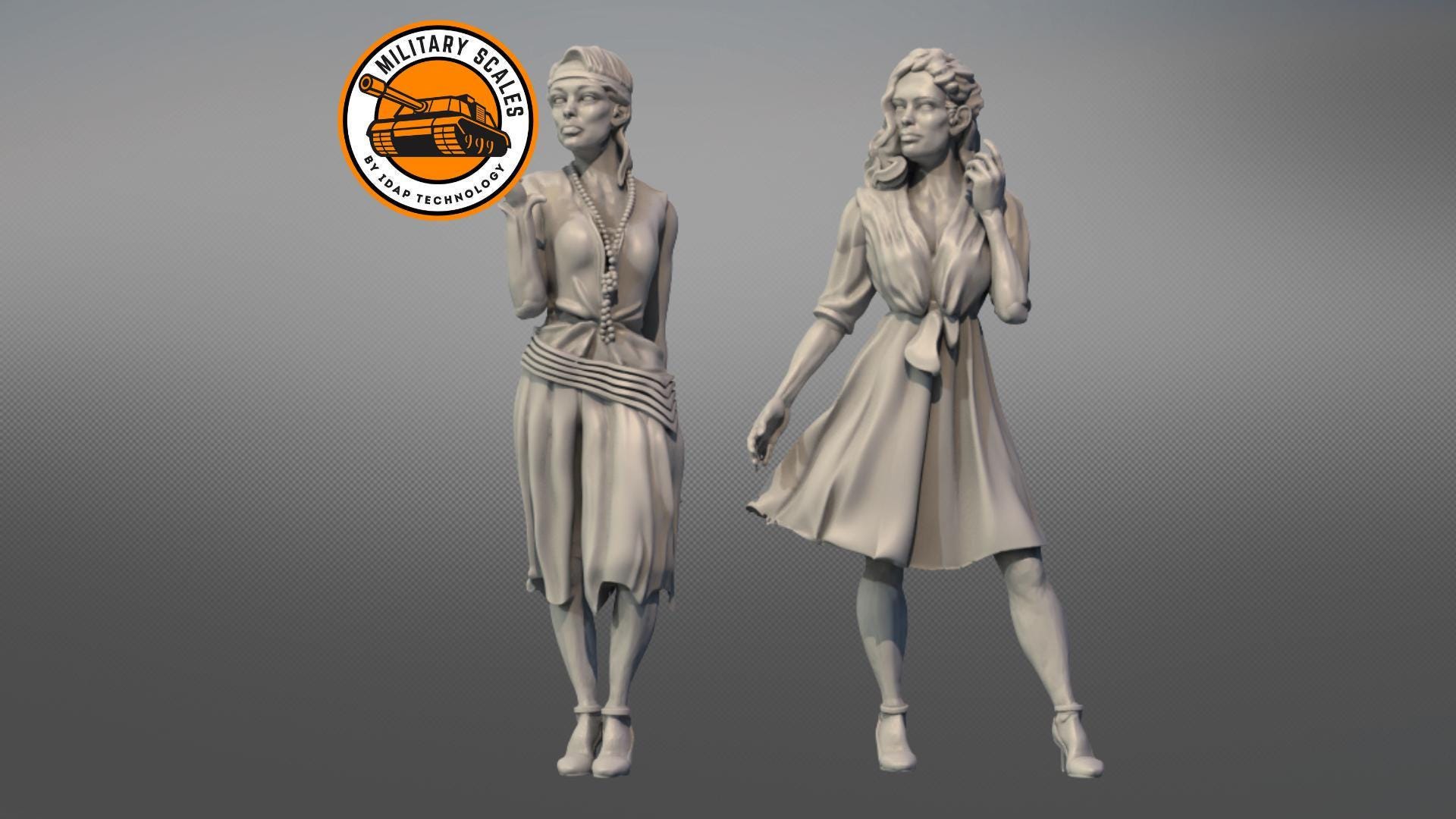 Civilian Girls #1 - war military scales hobby 1/30 1/35 1/48 1/56 1...