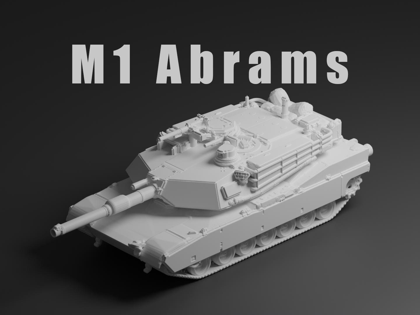 "This unpainted M1 Abrams miniature model captures the iconic U.S. main battle tank used from t...