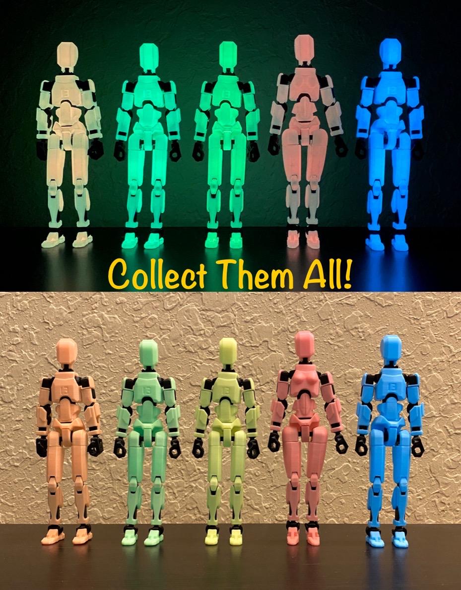 Glow in the dark, luminous fun Dummy 13 posable action figures, 3d printed, frame in high quality AB...