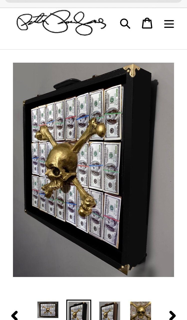 • 3D GOLD Skull and Bones in Brief Case of Money