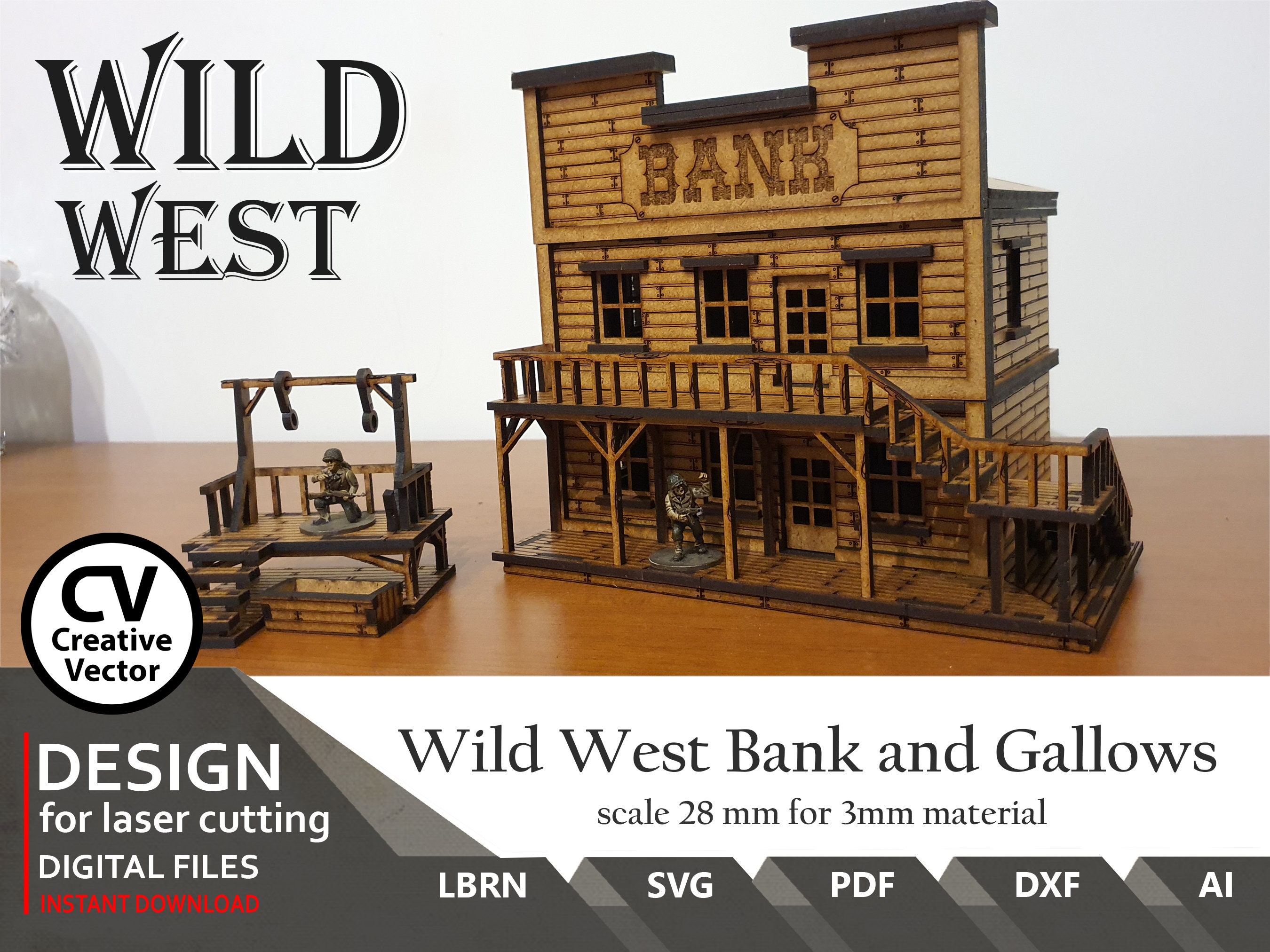 • Files for laser cut Wild West Bank & Gallows : 28-34mm Scale (S...