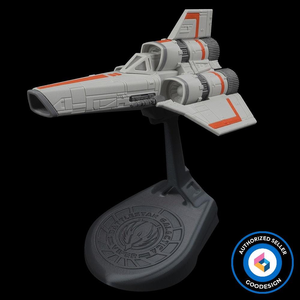 The 3D printed model of the Battlestar Galactica Viper Mark I captures the iconic starfighter from t...