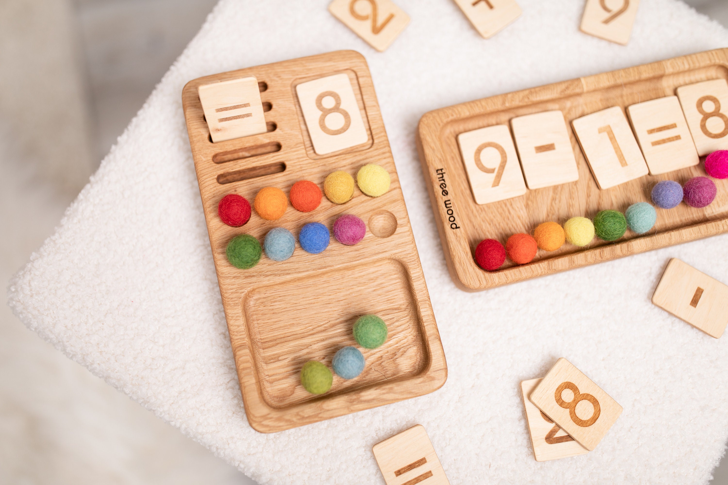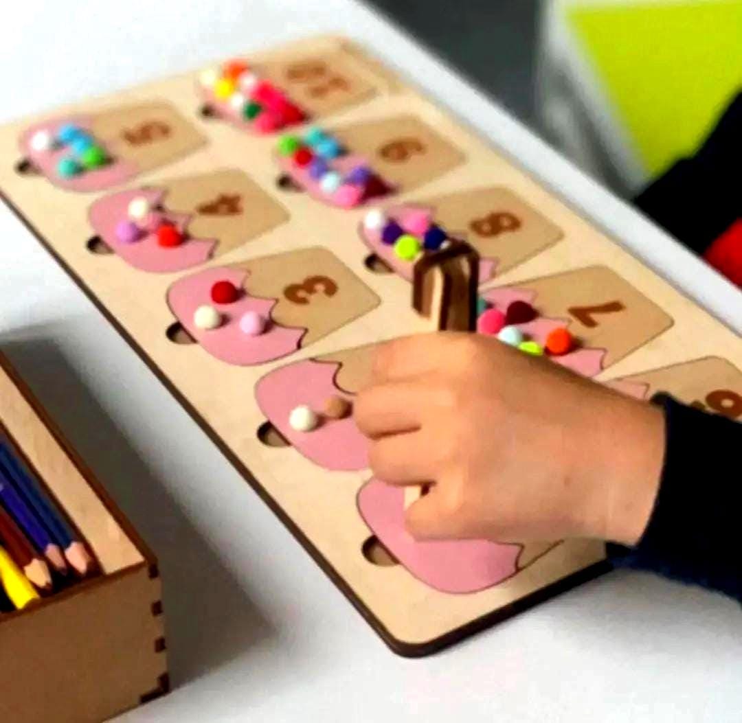 Wooden counting toy with pom-pom's, Montessori learning math, Count...
