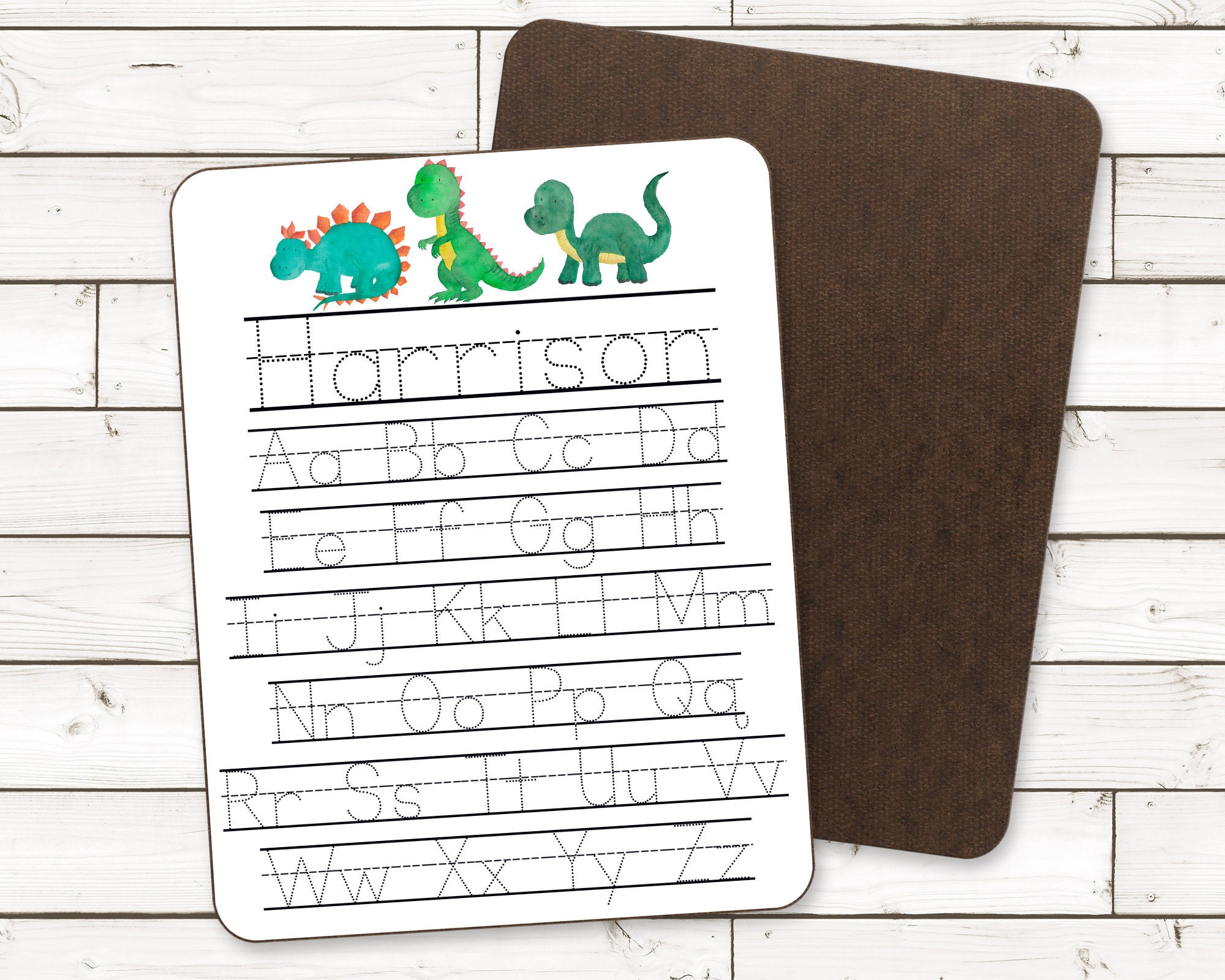 personalized dinosaur dry erase board, penmanship board, toddler ha...