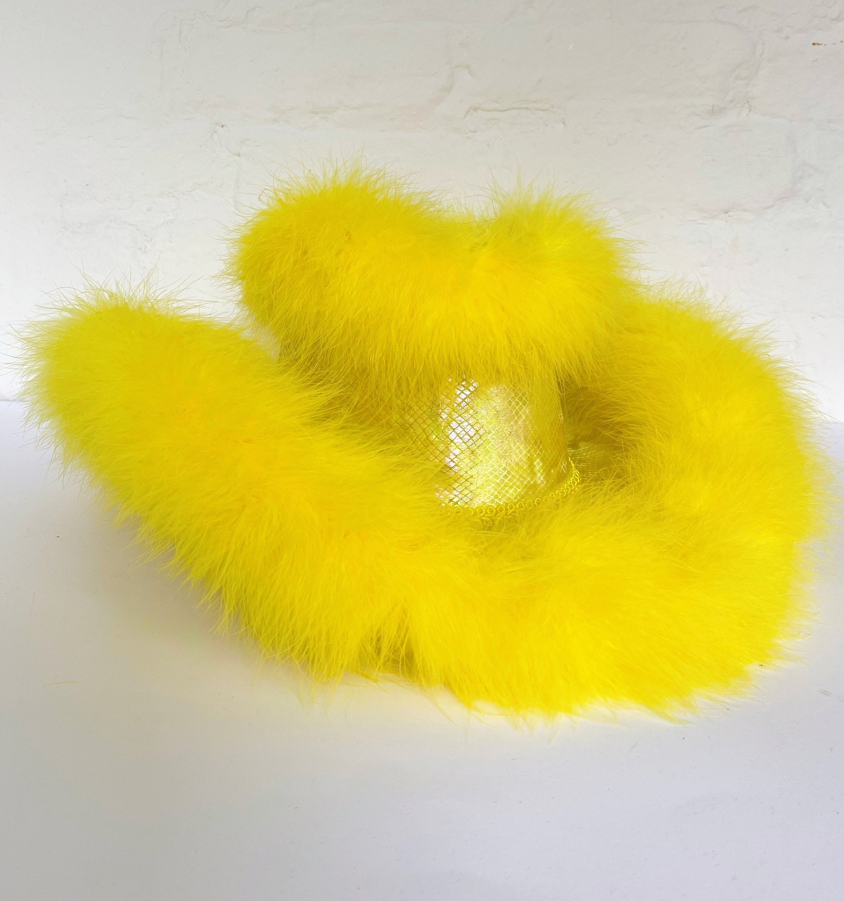 Festival Fluffy Yellow Cowboy Hat. Yellow Fluffy Marabou Trim Cowbo...