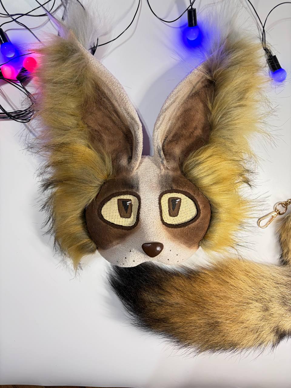 Therian mask and tail, faux fur tail, cat, calico cat, animal furry...