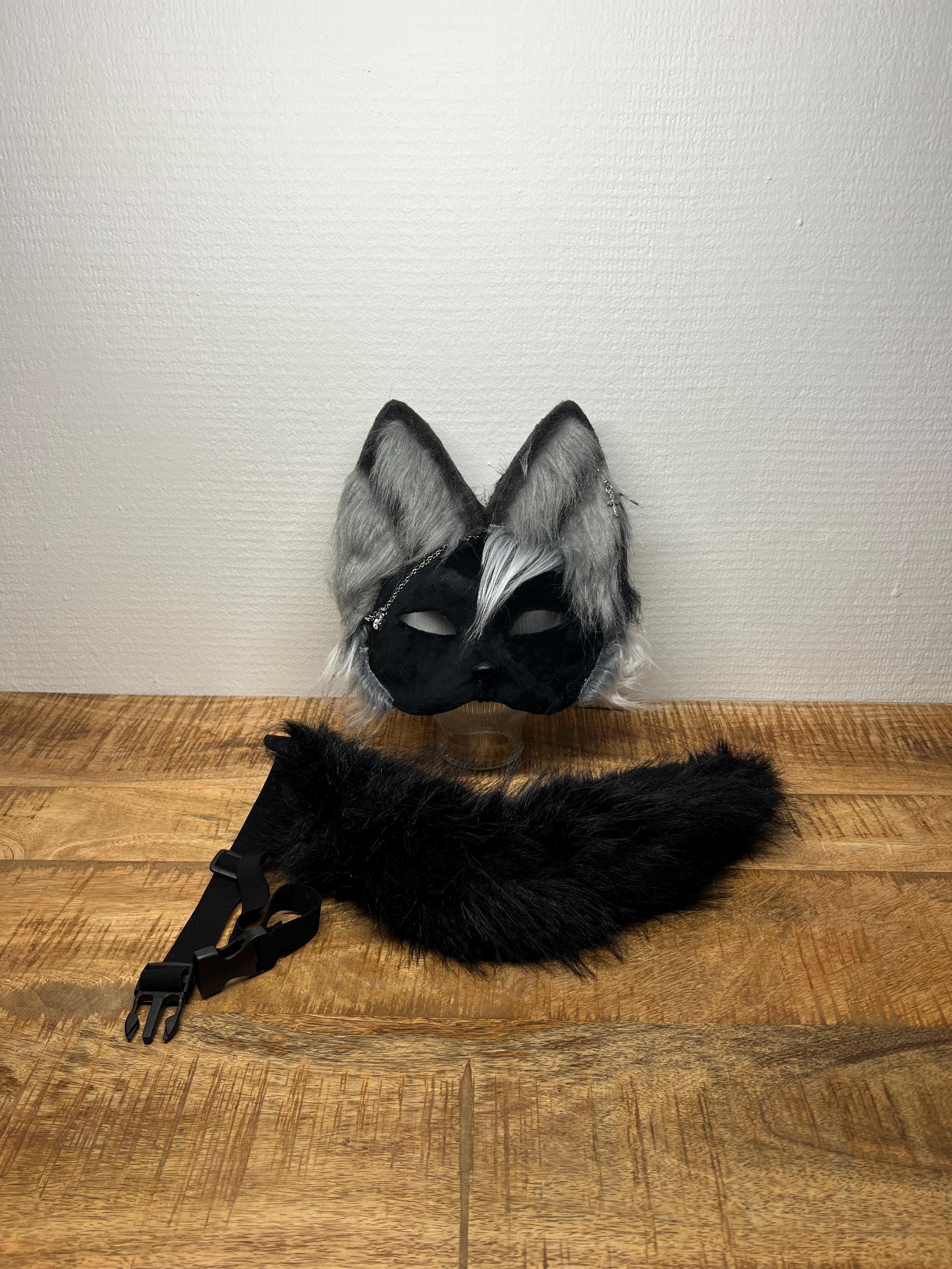 This handcrafted Cat mask and tail set is perfect for anyone who identifies as a therian cat or love...