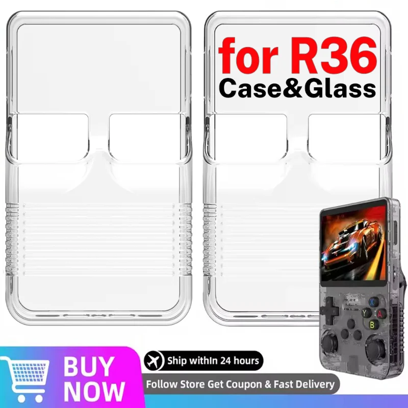 Glass+Case for R36S Game Console Protector Accessories Kit Anti Scr...