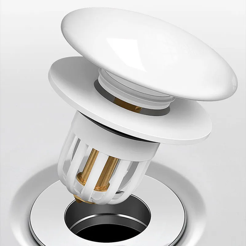 White Push-Type Sink Drain Stopper - Ceramic Anti-Rust Core, Hair F...