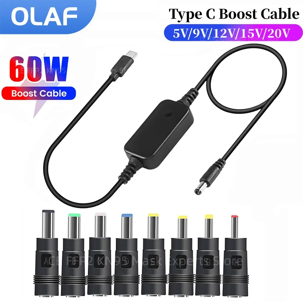 Olaf Type C To DC Power Boost Cable DC 5V/9V/12V/15V/20V Boost Converter 8 Adapters Step-up Cord For...