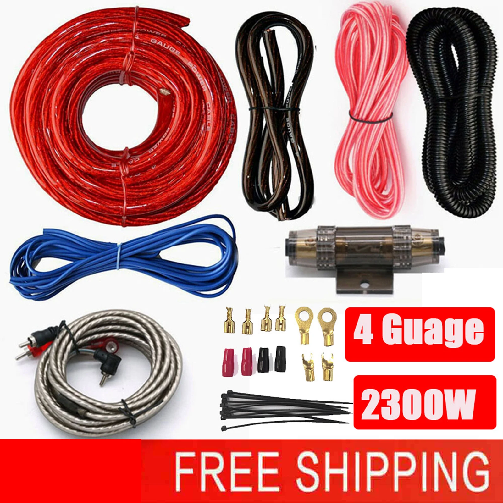 4 GA 2300W Car Amplifier Wiring Kit Audio Amplifier Cable Set Fuse ...