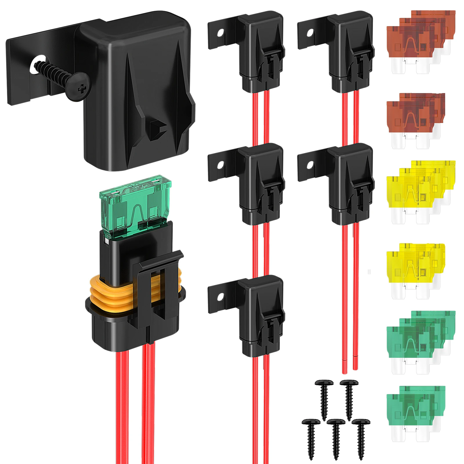 DaierTek 5PCS 12 AWG Inline Fuse Holder 12V ATC/ATO Blade Fuse Holder with 20 Amp 30 Amp 40 Amp Inli...