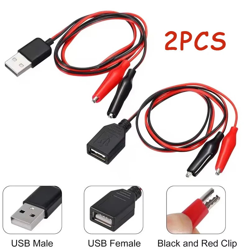 2pcs Circuit Test USB to Alligator Clip Adapter Cable Male Female USB to Alligator Clip Probe USB Ca...