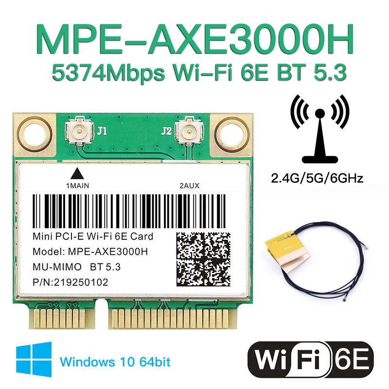 WiFi 6E AX5400 PCIe Adapter Bluetooth 5.3 Triple Band 2.4G/5G/6GHz ...