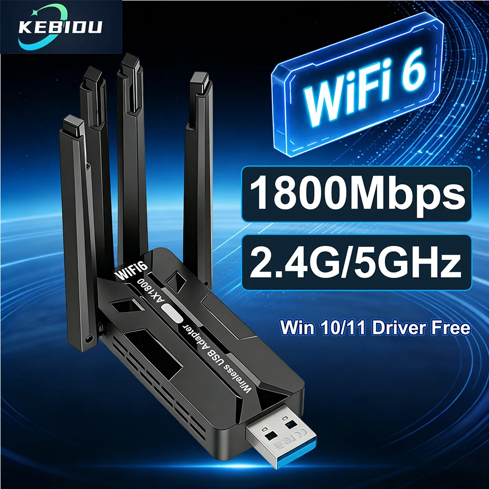 Kebidu AX1800 WiFi USB Adapter WiFi6 Dual Band 2.4G 5Ghz 4 Antenna ...