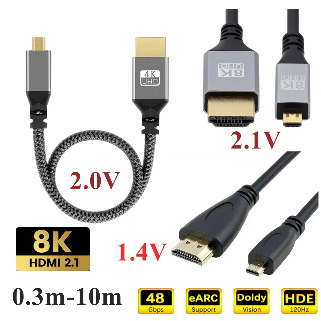10m 5m 3m 1m 0.3m Micro HDMI to HDTV HDMI-Compatible 4K 8K Cable Co...