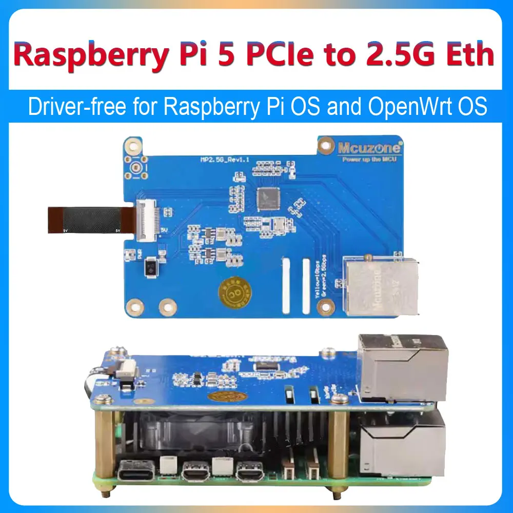 Raspberry Pi 5 PCIE to 2.5G Ethernet HAT Expansion board Pi5 RTL8125 Driver-free for Raspberry Pi OS...