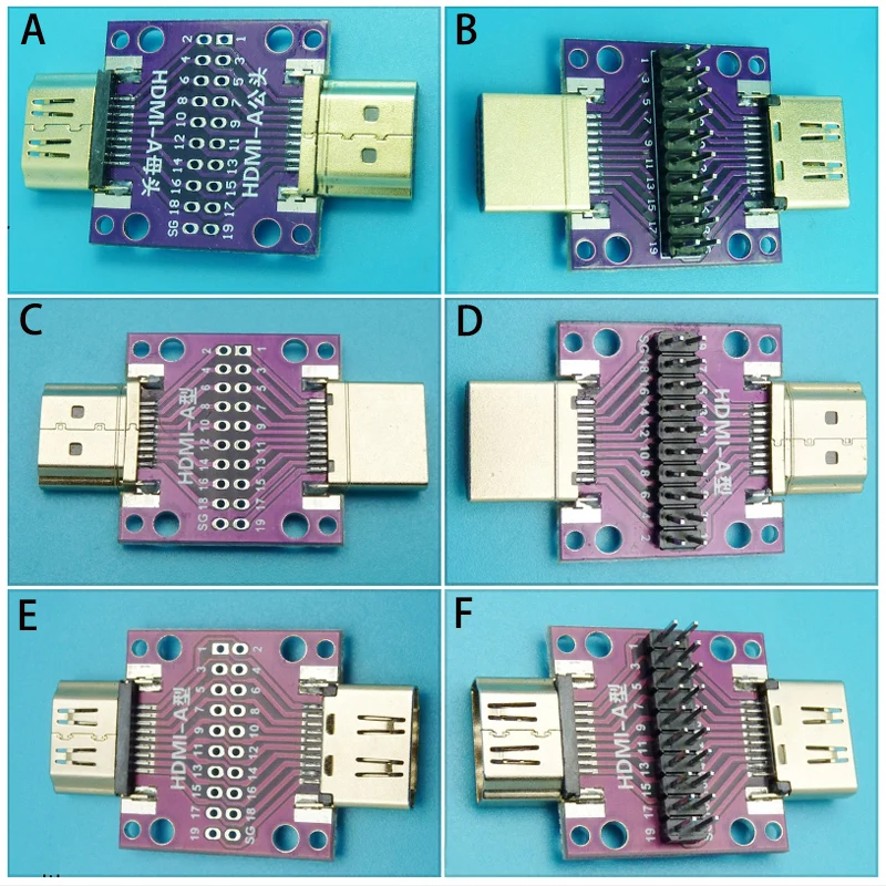 HDMI Rotating Female Test Adapter Board Male to Male to Female Adapter Board Pin Set with PCB Board ...