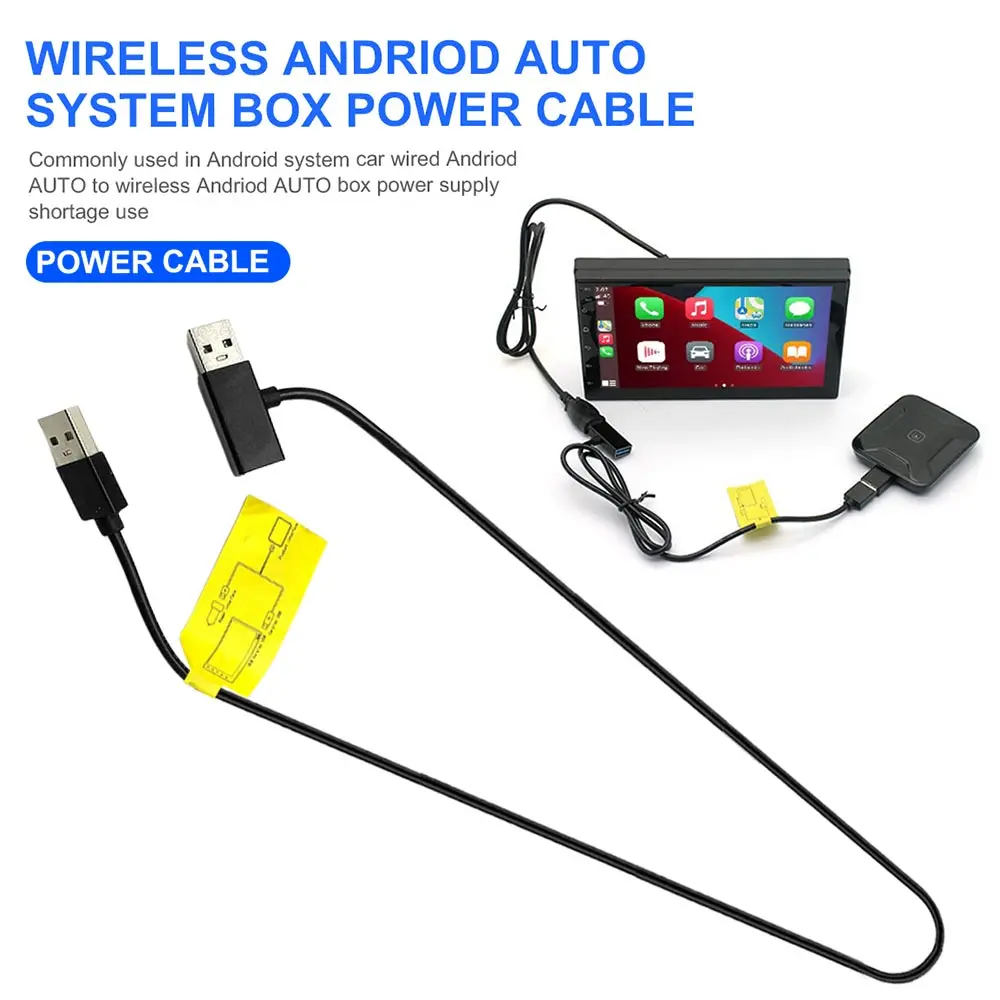 2/1pcs 12V Two-Point Line Prevent Restart Wireless CarPlay Android Auto Power Supply Cable High Spee...