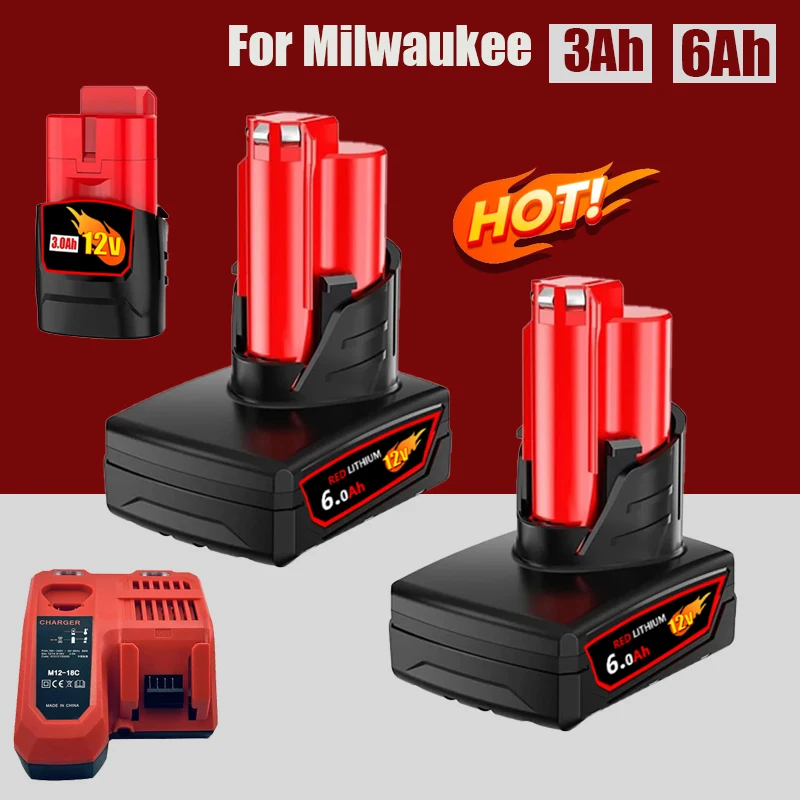 12V For Milwaukee Battery 3Ah Compatible with Milwaukee M12 XC 48-11-2410 48-11-2420 48-11-2411 12-V...