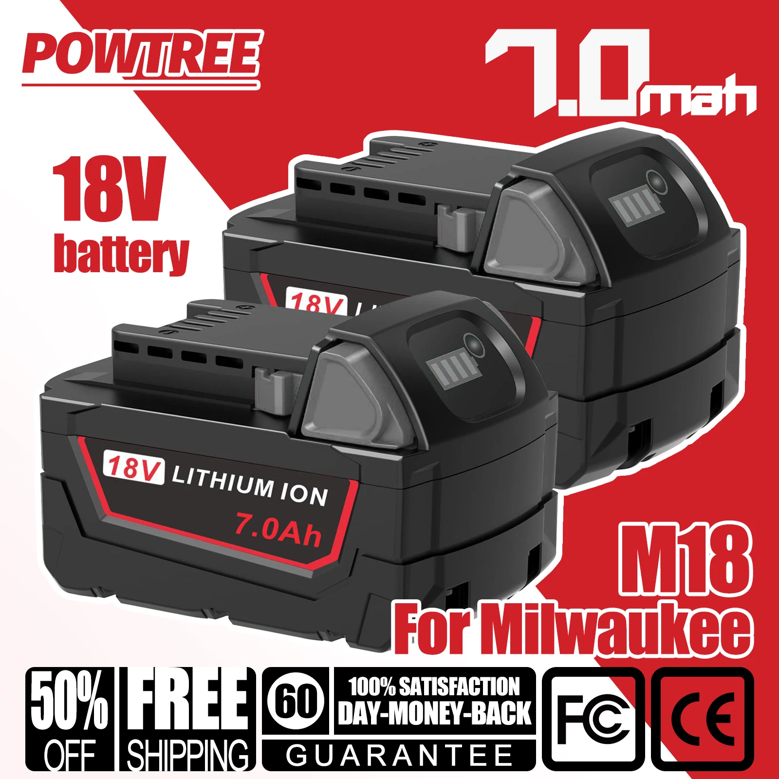 3.8/7.0mAh For Milwaukee M18 Battery 18V Rechargeable Lithium Batte...