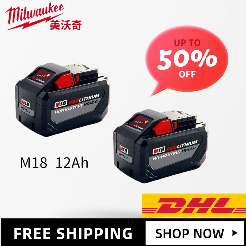 Original Milwaukee Battery 12Ah 12000mAh Rechargeable Tool Battery ...