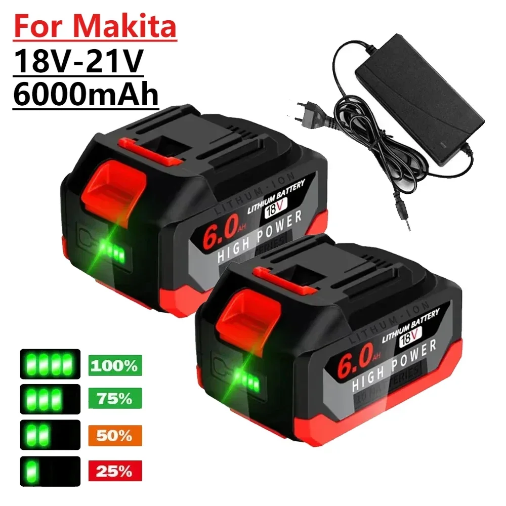 18V 6.0Ah Large Capacity Rechargeable Lithium Ion Battery for Makita 18V-21V Electric Wrench, Drill,...