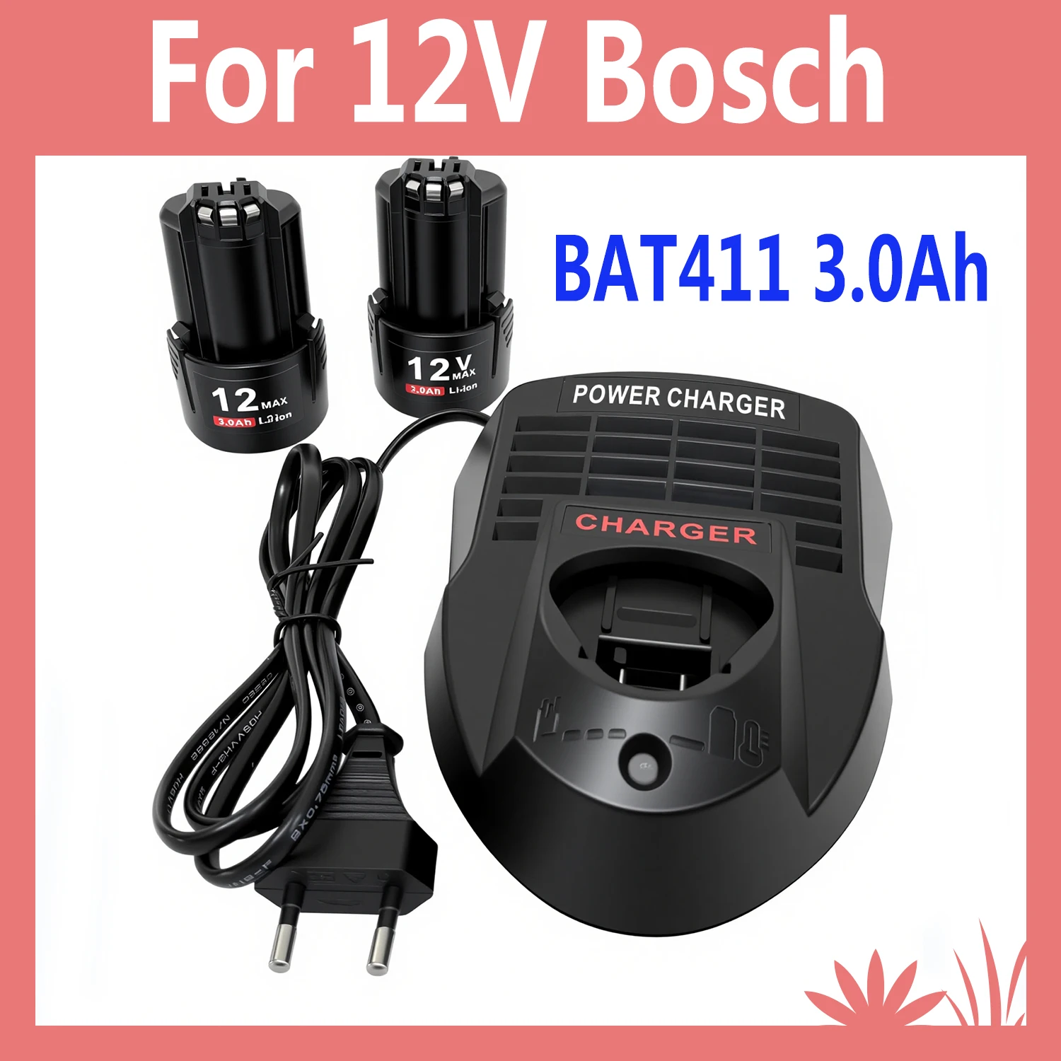 For BOSCH 12V 3.0Ah BAT411 Replacement Battery for Bosch 12V Battery BAT412A BAT413A D-70745GOP 2607...