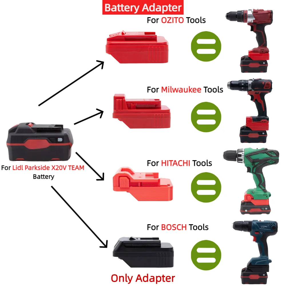 Battery Adapter for Lidl Parkside X20V TEAM Li-ion Battery TO OZITO 18V/Milwaukee 18V/HITACHI 18V/BO...