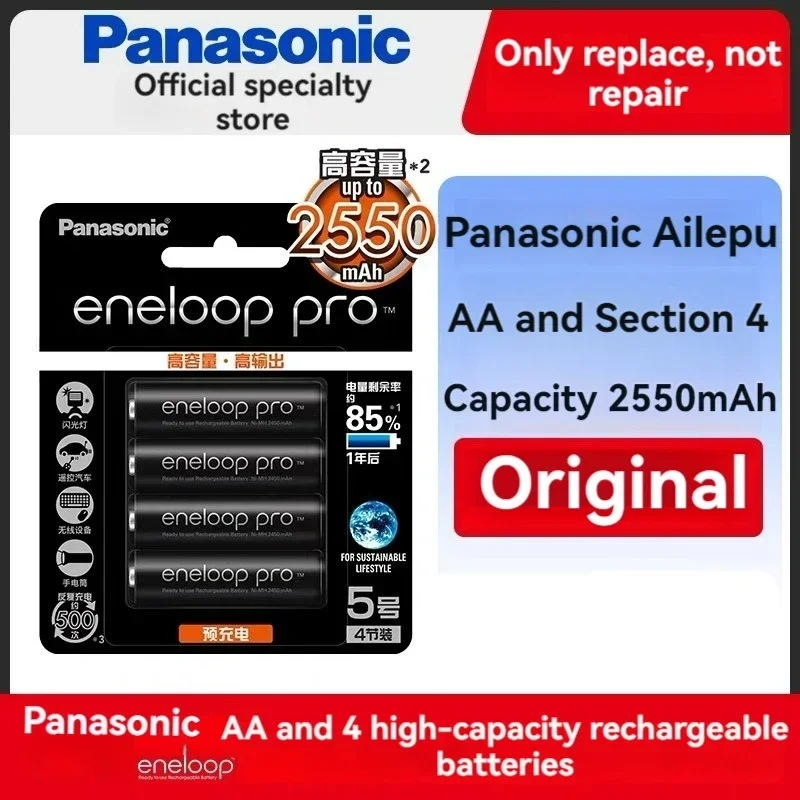100% Panasonic Eneloop Original Battery Pro AA 2550mAh 1.2V NI-MH Camera Flashlight Toy Pre-Charged ...