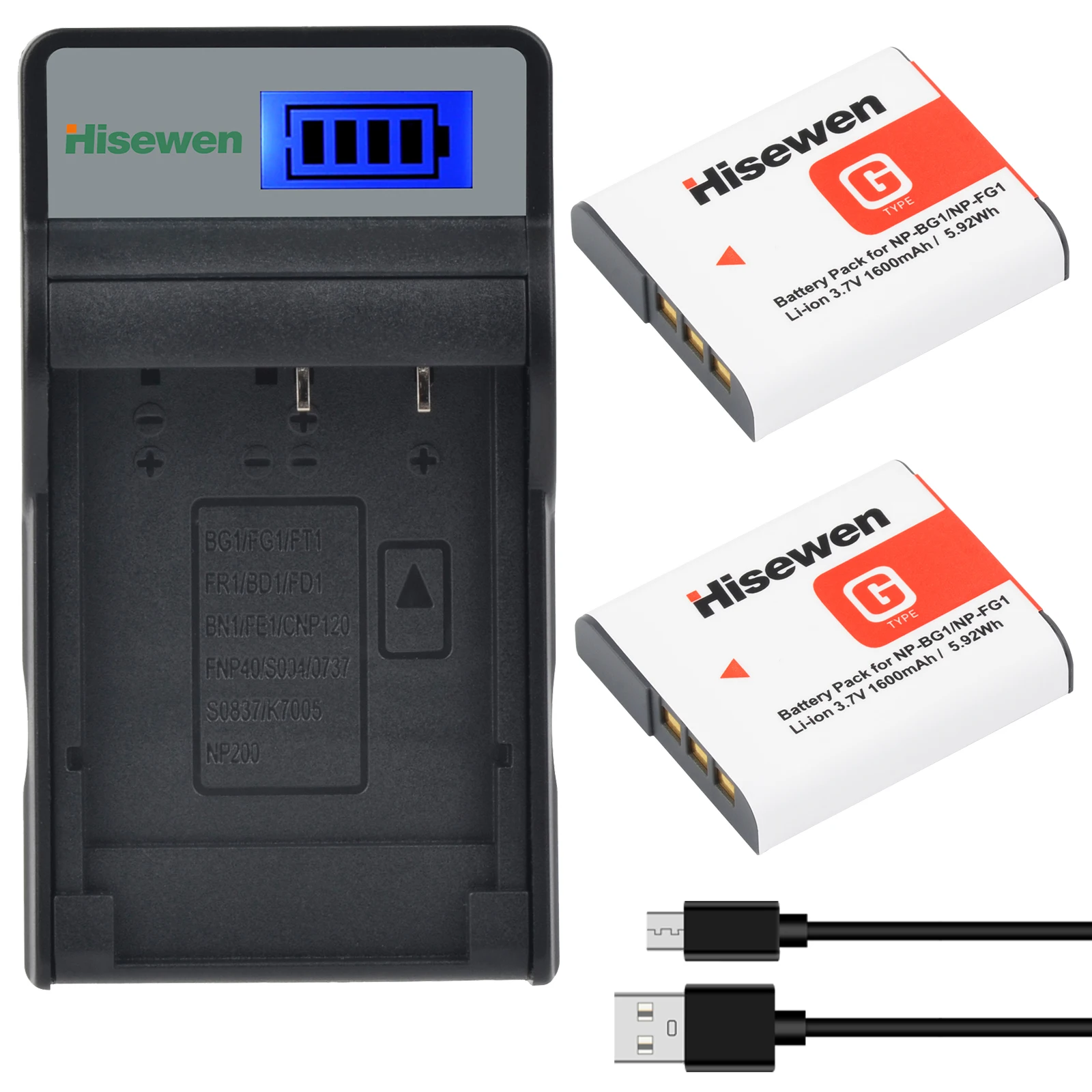 NP-BG1 NP-FG1 Battery Charger with Charger for Sony DSC-W100 DSC-W210 DSC-W110 DSC-W120 DSC-W130 DSC...