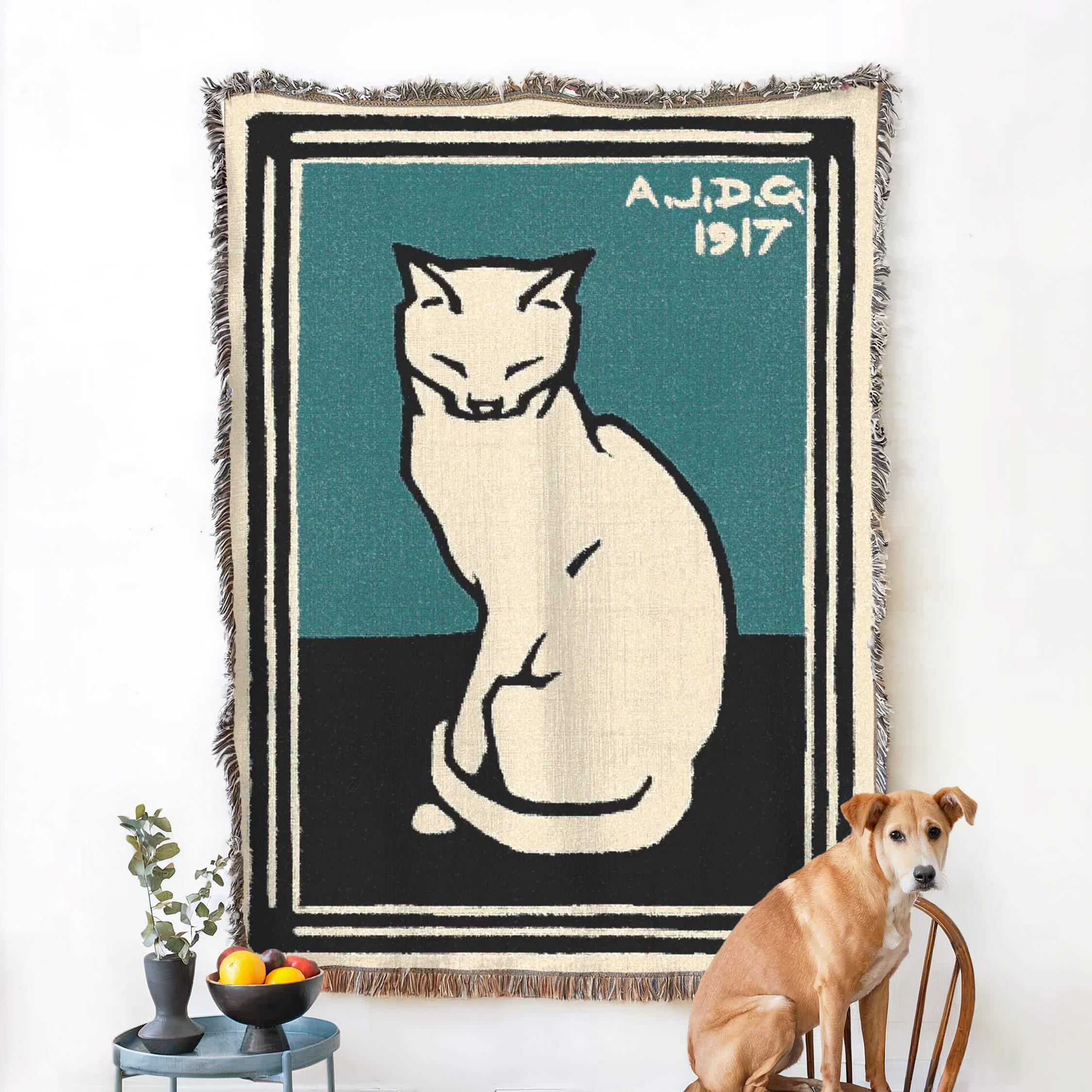 Sitting Cat Art Blanket, Julie de Graag Cat Throw, Vintage Cat Wove...