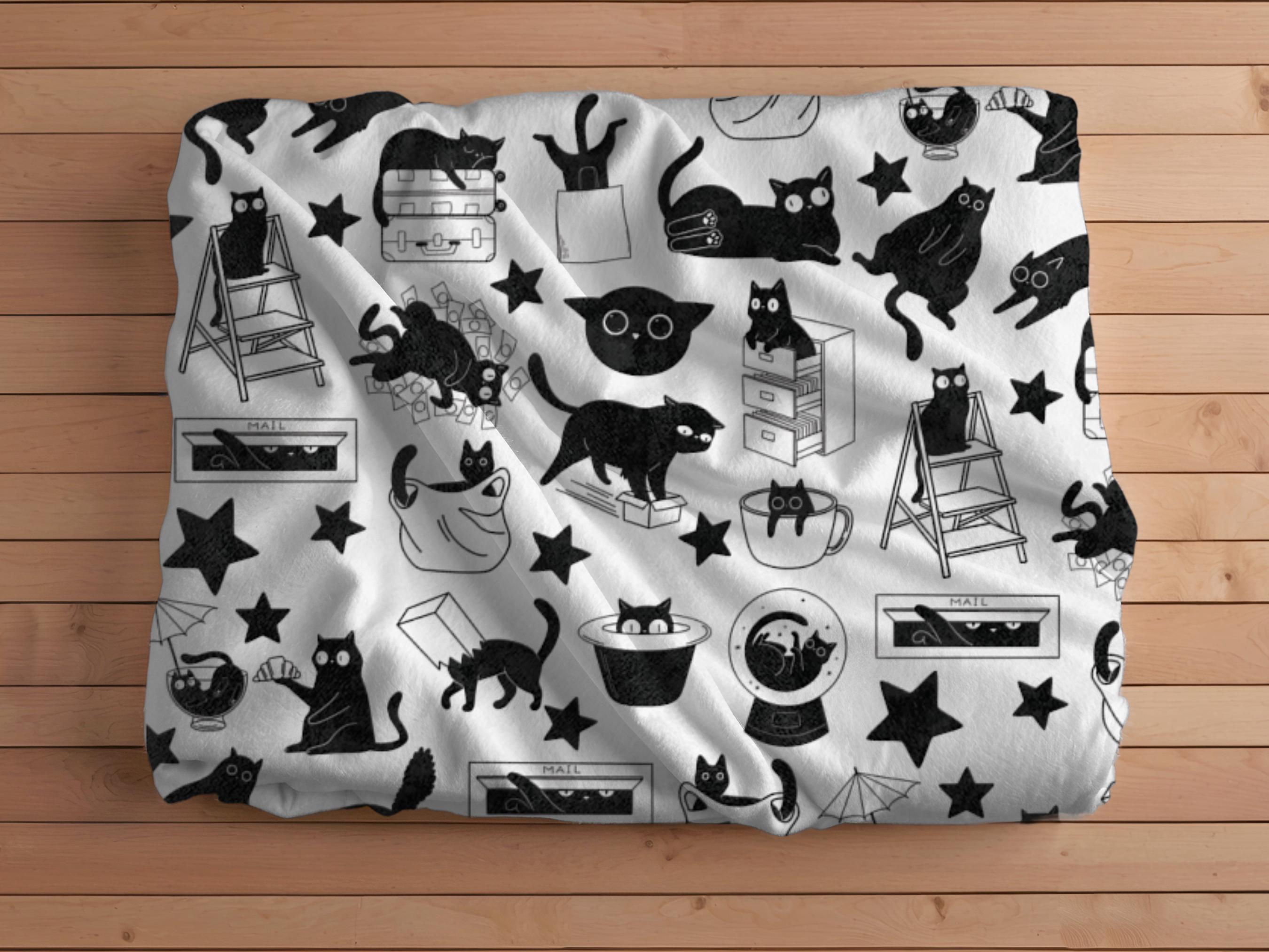 The Black Cat Throw Blanket features an adorable kitten print on soft fleece, making it a cozy gift ...