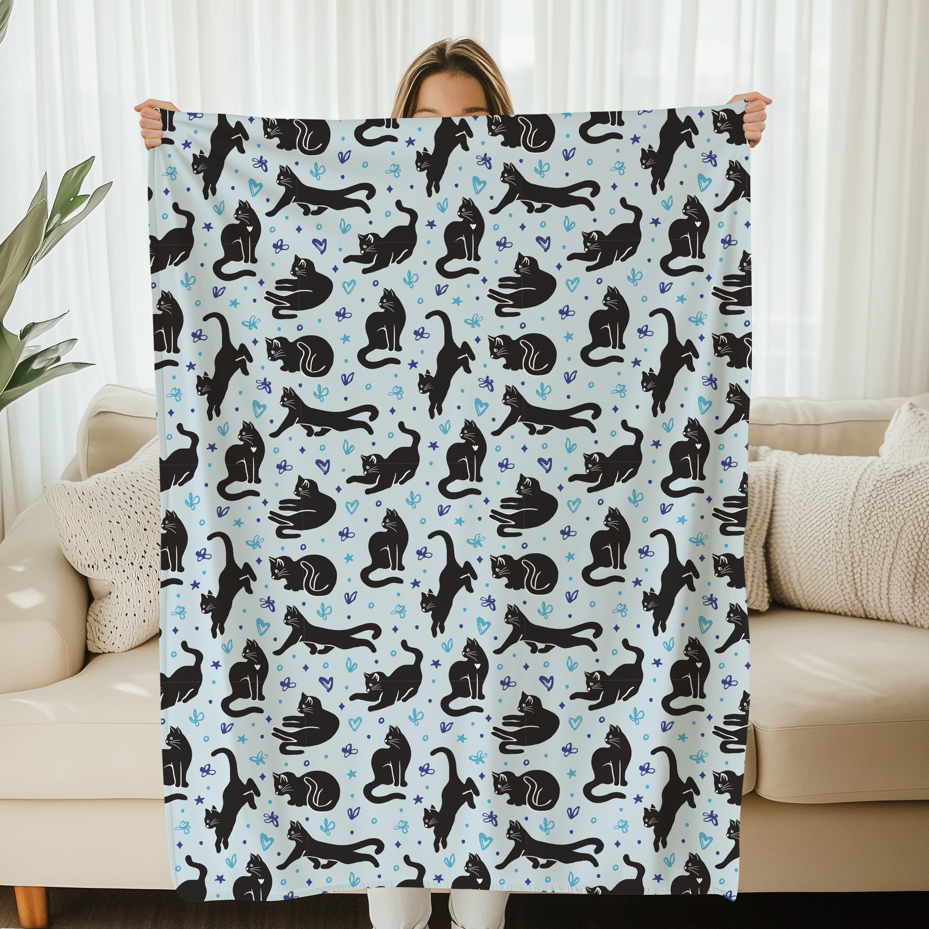 Black Cat Blanket Blue Blanket Nursery Black Cat Home Decor Cat Gif...