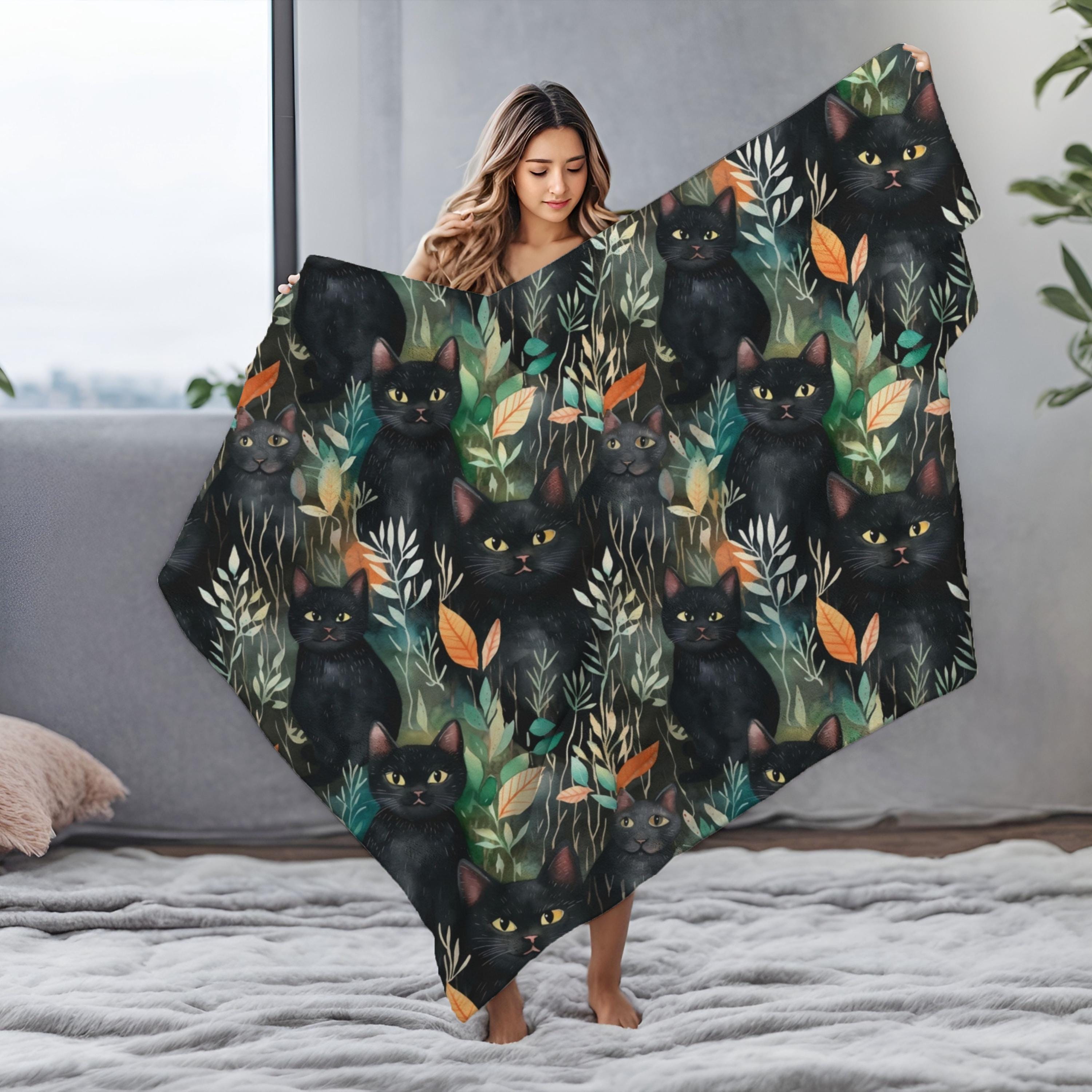 "Black Cat blanket, Boho Comfy Cat Blanket for Cat Lovers, Throw Blanket, Cat Themed Gift, Gift...