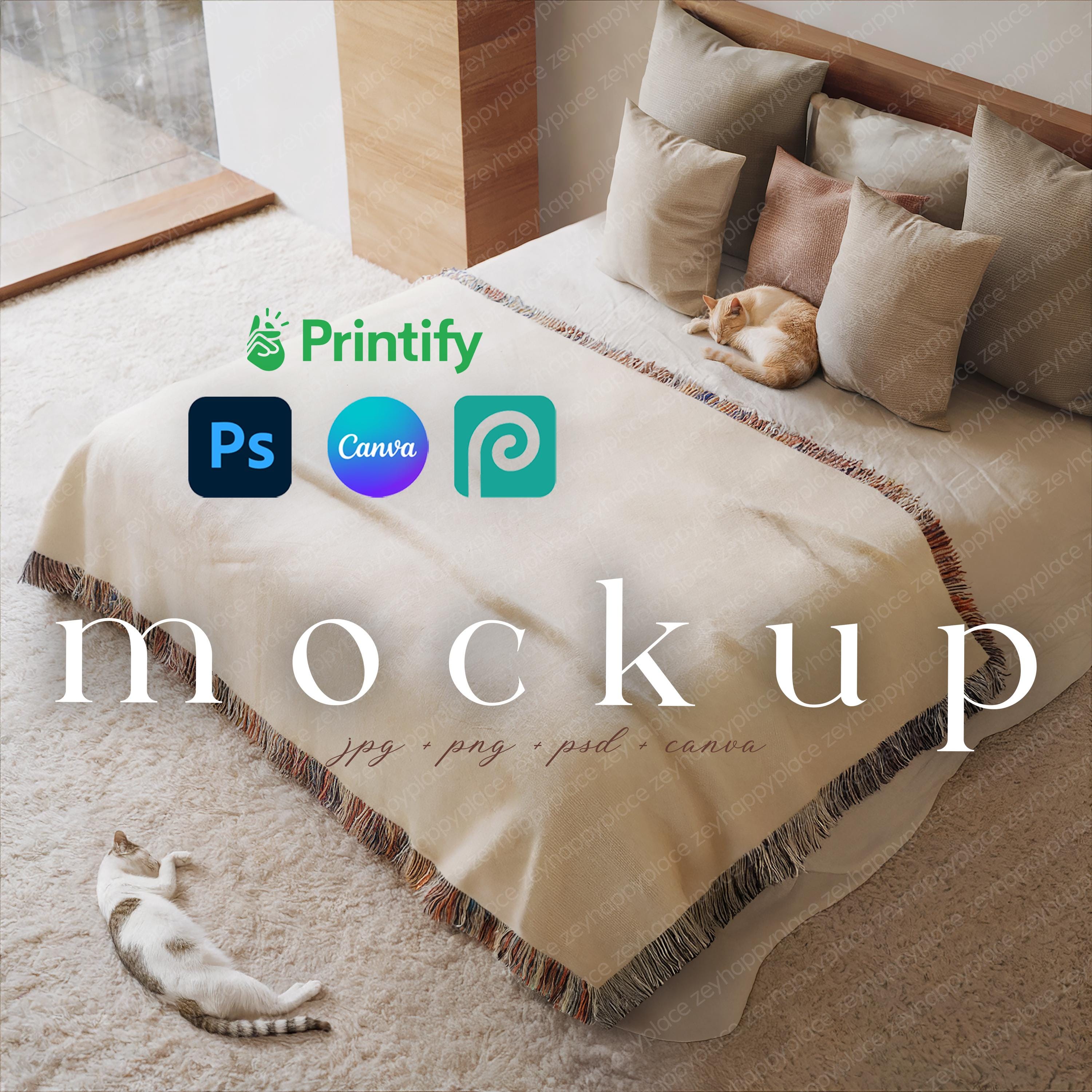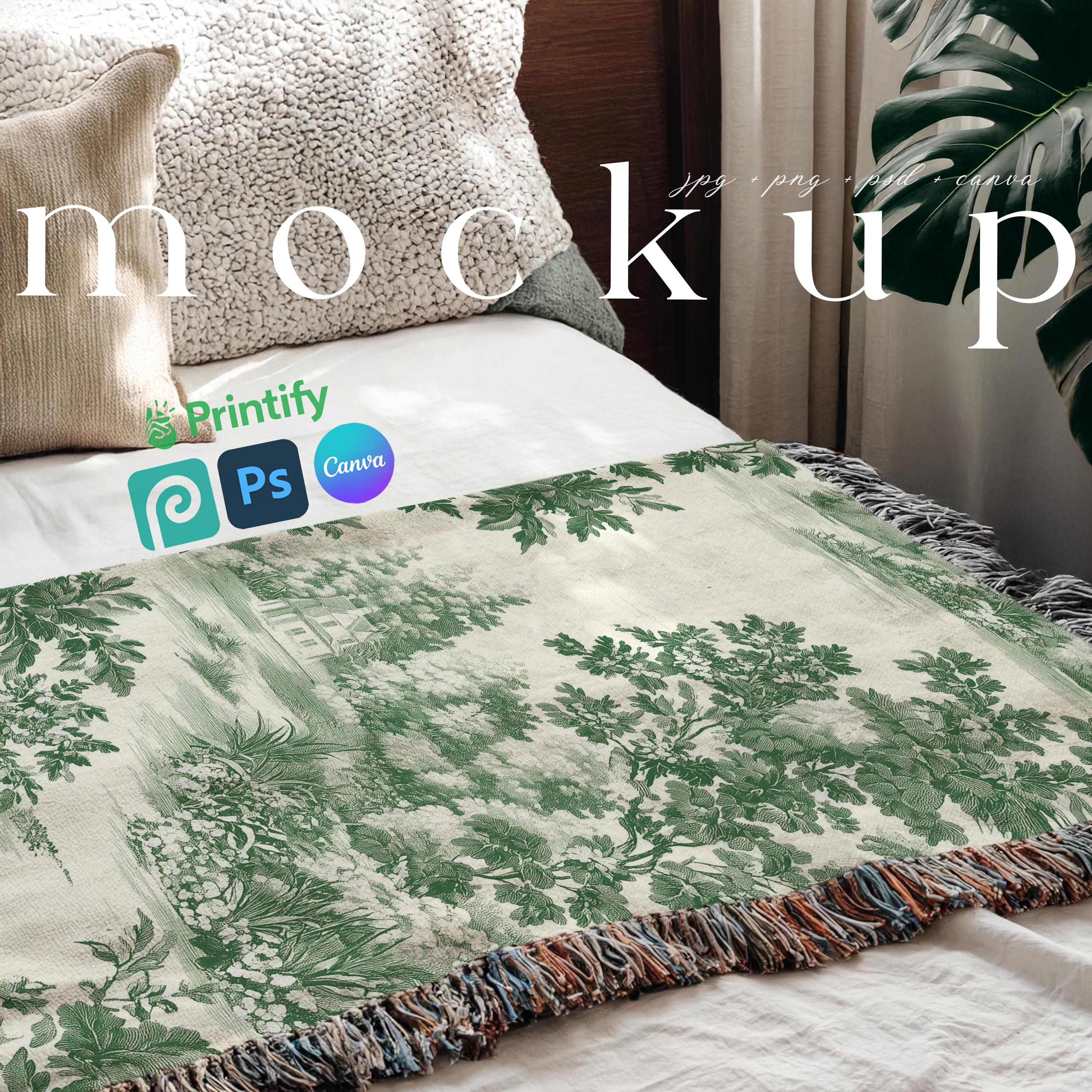 Woven Throw Blanket Mockup on a Bed Woven Tapestry Blanket Mockup C...