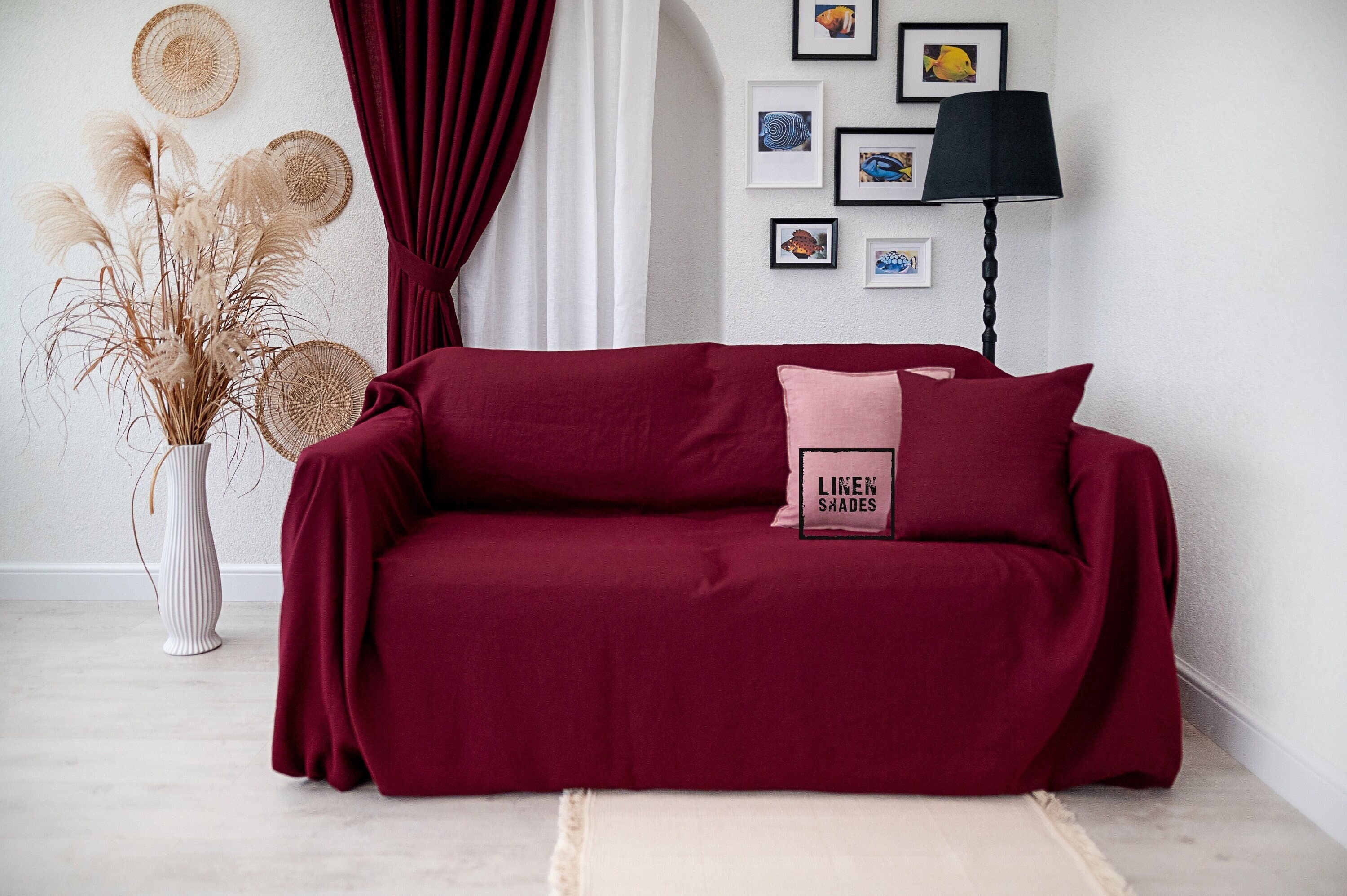 Burgundy Linen Couch Cover-Stylish Sofa Protection.Custom Burgundy ...