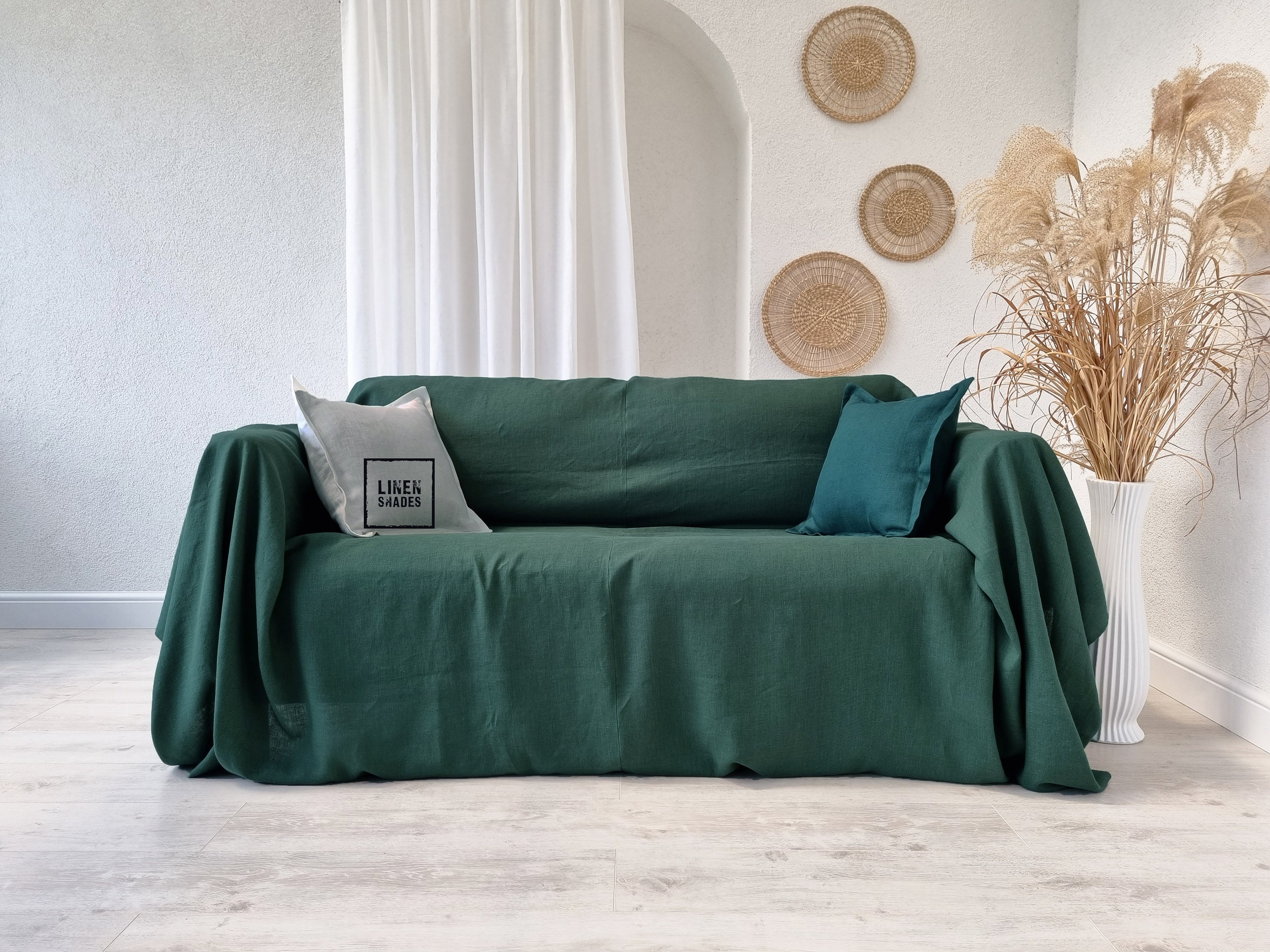 Emerald linen couch cover.Emerald linen bedspread. Emerald custom s...