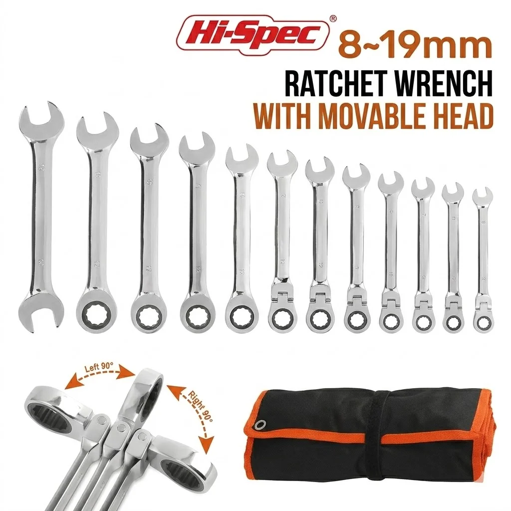 Hi-Spec Adjustable Torque Ratchet Wrench Set 8-19Mm Universal Spann...